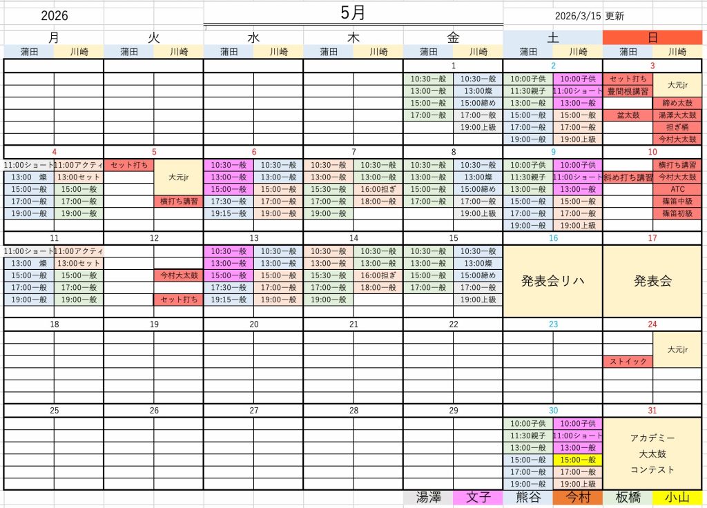 26年5月の講習予定表